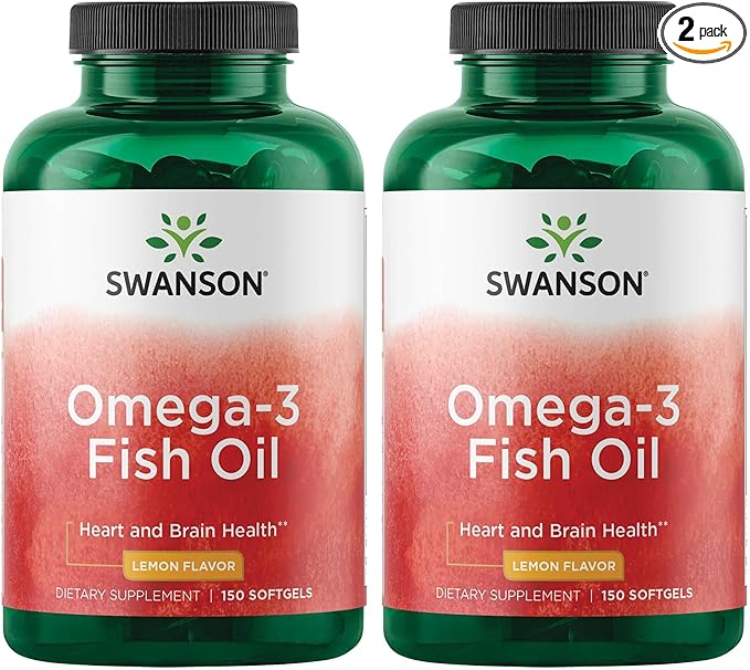 Swanson Omega 3 Fish Oil Supplement Heart Brain and Joint Support GMO-Free EFAs 180 mg EPA Plus 120 mg DHA 150 Softgel Capsules Lemon Flavor (2 Pack)