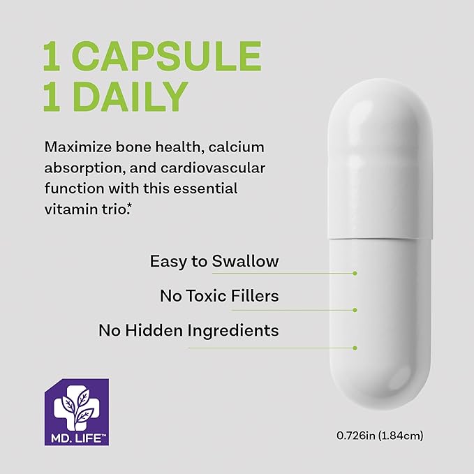 - MD.LIFE VITAMIN ADK SUPPLEMENT: Our premium MD.Life A D K Vitamin features a robust formula packaged in a 90-day supply of easy-to-swallow vegan and gluten-free capsules.
