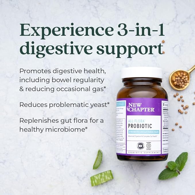 New Chapter Probiotic All-Flora - 60 ct (2 Month Supply) for Advanced Digestion & Complete Gut Health with Prebiotics + Postbiotics, Clinically Studied Strains, 100% Vegan, Non-GMO, Shelf Stable