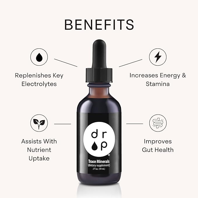 Organic Trace Minerals Electrolyte Drops with Fulvic Acid 2 oz Alkaline Liquid Minerals for Water - Supports Gut Health, Energy, Stamina, and Nutrient Uptake