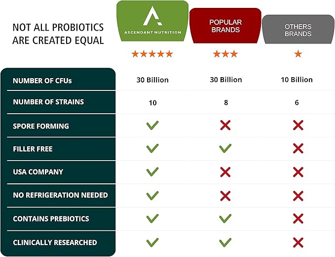 Ascendant Nutrition Bacillus Subtilis Probiotic - 30 Billion CFU Multi-Strain Probiotics for Women and Men - Supports Digestive and Gut Health - 30 Capsules