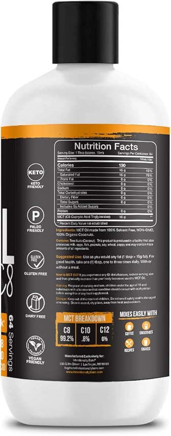- Product Benefits : Flavorless, Non-GMO, BPA Free Bottle, Pure C8 Organic MCT Oil, 32 Fluid Oz, Coffee, Shakes, Salads, Cooking, Fast, Sustainable Focus & Energy, Excellent for Keto & Paleo Flavorless, Non-GMO, BPA Free Bottle, Pure C8 Organic MCT Oil, 32 Fluid Oz, Coffee, Shakes, Salads, Cooking, Fast, Sustainable Focus & En… See more