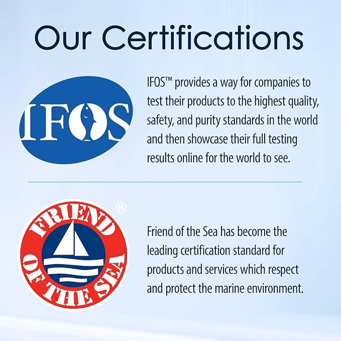 - UNCOMPROMISING QUALITY: AquaOmega ensures purity and sustainability. Our third-party tested fish oil, wild caught omega 3 is IFOS certified and meets the highest safety standards, while responsible sourcing helps protect ocean health.