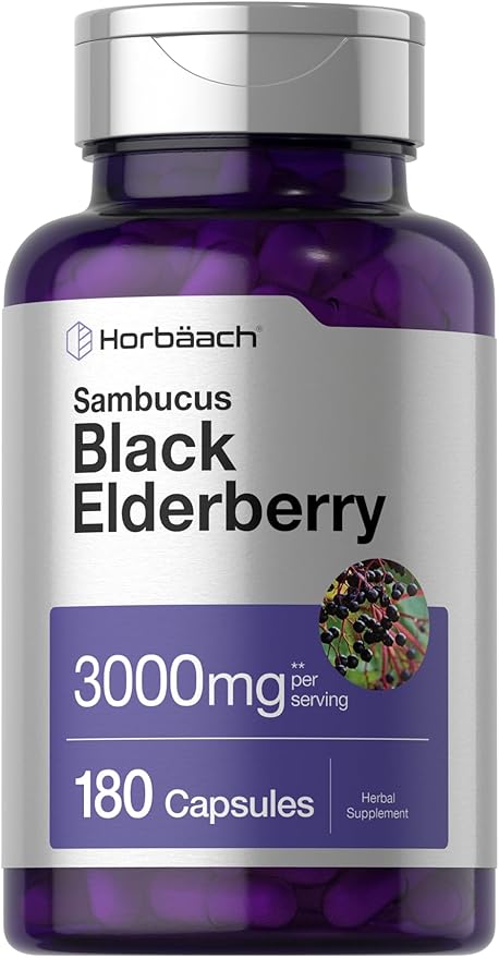 Horbäach Black Elderberry | 3000mg Capsules | 180 Count | Non-GMO, Gluten Free | Sambucus Extract Supplement