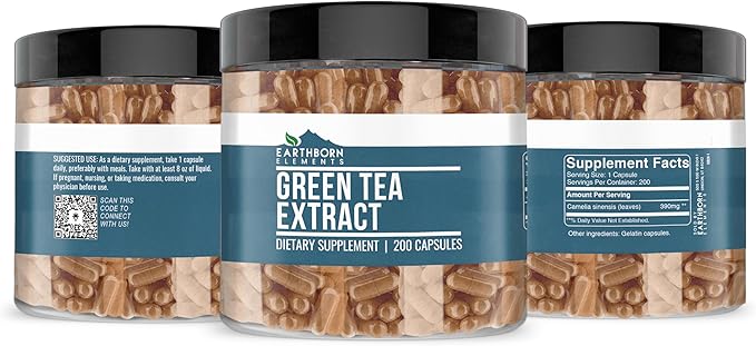 Earthborn Elements Green Tea Extract 200 Capsules, Pure & Undiluted, No Additives
