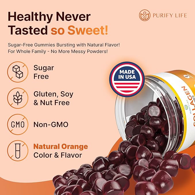 - [Healthy Hair, Skin, Nails]: Rejuvenate the skin and gain a glow with this collagen peptide in your diet, delivering tighter skin and smaller pores. Enjoy healthier hair, stronger nails, glowing skin and youthful complexion with our collagen supplements for women and men. For best results, couple these with our Biotin Gummies by Purify Life.