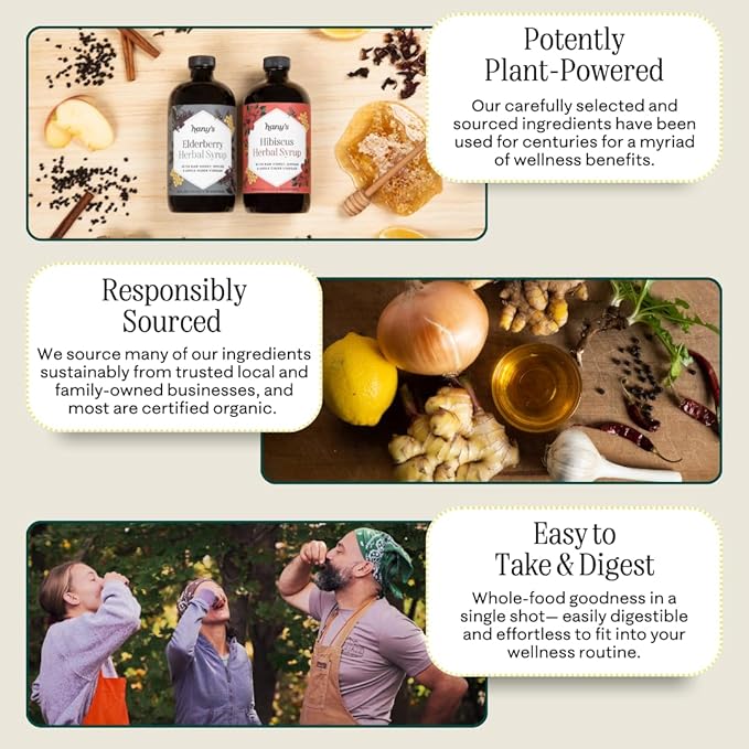 - Handcrafted Wellness Syrup: Hany’s Harvest Hibiscus Ginger Herbal Syrup is carefully handcrafted in small batches for superior quality and freshness. Our Apple Cider Vinegar contains responsibly sourced ingredients to promote sustainability and environmental care.This wellness tonic is bottled in-house to ensure the highest standards of purity and care.