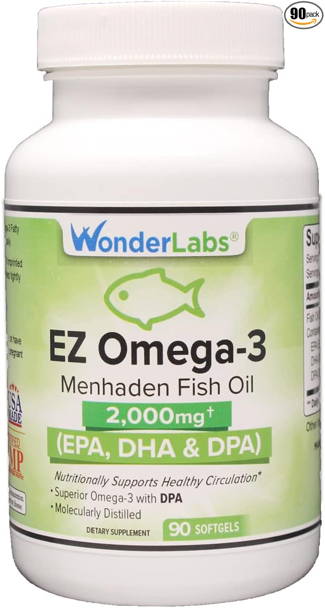 Atlantic Menhaden Fish Oil Omega-3 2000 mg, Burpless, Made in The USA, Perfect Balance of EPA+ DHA + DPA 90 Softgels