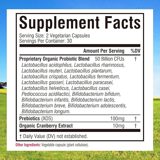 - [Delayed Release Probiotics Formulated for the Women] Our probiotic product has 50 billion CFUs and 17 clinically proven probiotics strains. Our shelf stable and targeted release capsules helps more living cultures survive harsh stomach acid, so more beneficial bacteria reach your intestinal tract. It’s also comes with Organic Prebiotics Fiber and Cranberry Extract for the maximum effectiveness and benefits.