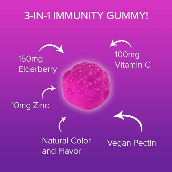 - Elderberry Gummies, Sambucus, Vitamin C, Zinc, Immune Support, Antioxidant, Daily Supplement, Black Elderberry, Vegan Gummies, Gluten-Free, Immune Boost, Family Health, Chewable Gummies, Kids Vitamins, Adult Immune Supplement.