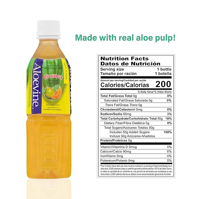 Aloevine Aloe Vera Drink (Guava, 16.9 oz 20 Pack)