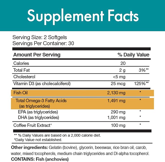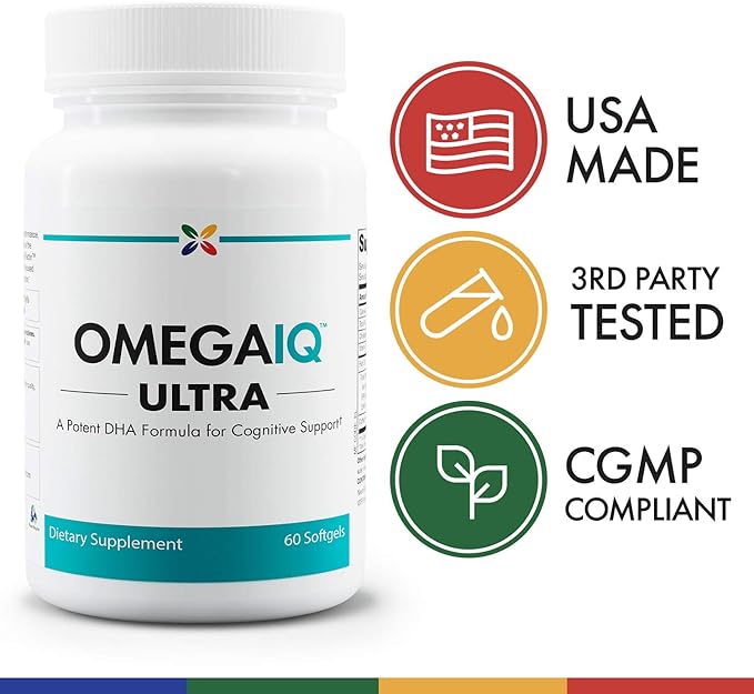 Stop Aging Now - OmegaIQ Ultra High DHA Formula - Omega 3 Fish Oil - EPA /DHA Brain & Heart Health, Eye Health, Skin Care & Joint Support - Coffee Fruit Extract, Vitamin D3 & Vitamin E - 60 Softgels