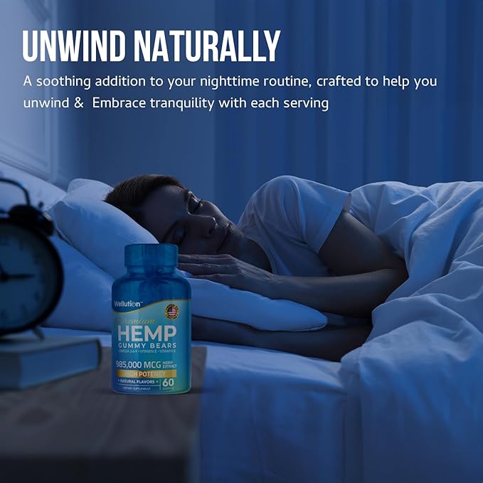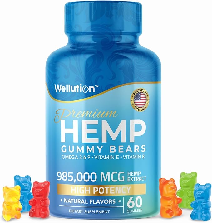 WELLUTION Hemp Gummies – High Potency 985,000 MCG – Natural Fruity Bear for Relaxation and Peace - Fast-Acting - 60ct