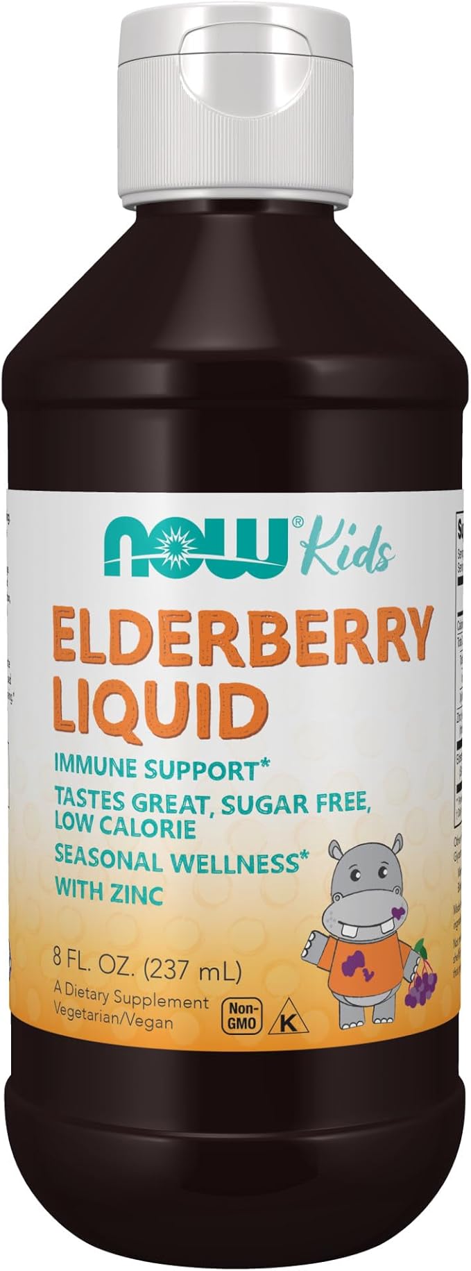 NOW Supplements, Liquid Elderberry for Kids with Zinc and Astragalus, Immune Support*, 8-Ounce, packaging may vary
