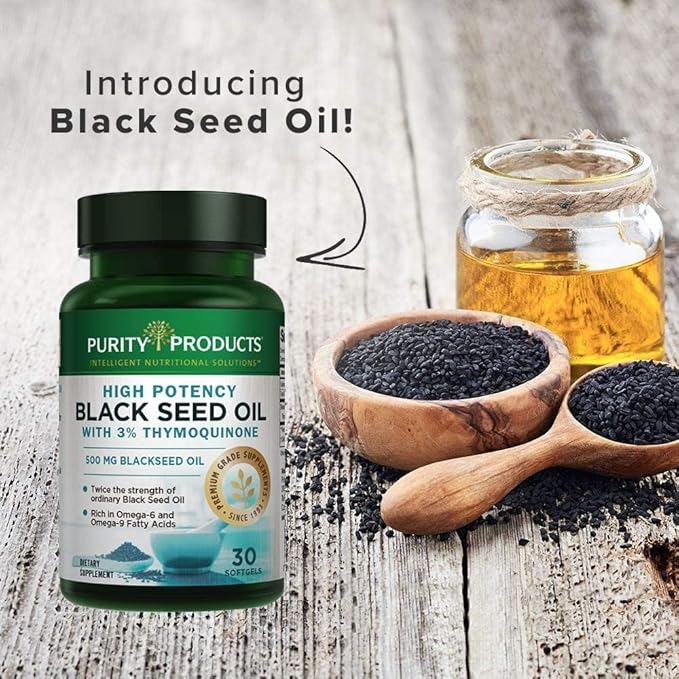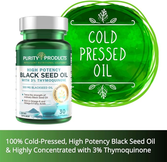 - DOUBLE STRENGTH: High Potency Black Seed Oil from Purity Products contains a 3% concentration of Thymoquinone, the active ingredient in Black Seed Oil— twice the strength of ordinary formulas.