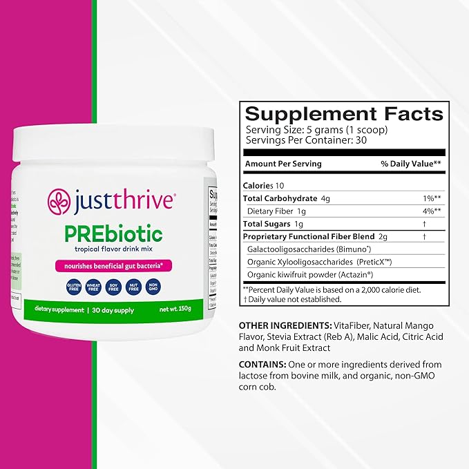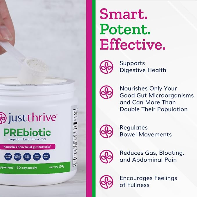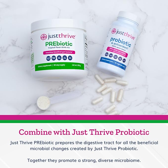 - Pairing with Probiotics Can Boost Good Microorganism Population: When combined with Just Thrive Probiotic, studies show PREbiotic can more than double your population of good microorganisms. A probiotic helps create your gut's good microorganisms, giving prebiotic powder plenty of good microorganisms to feed!