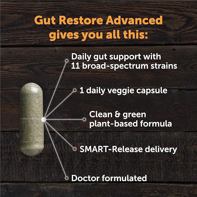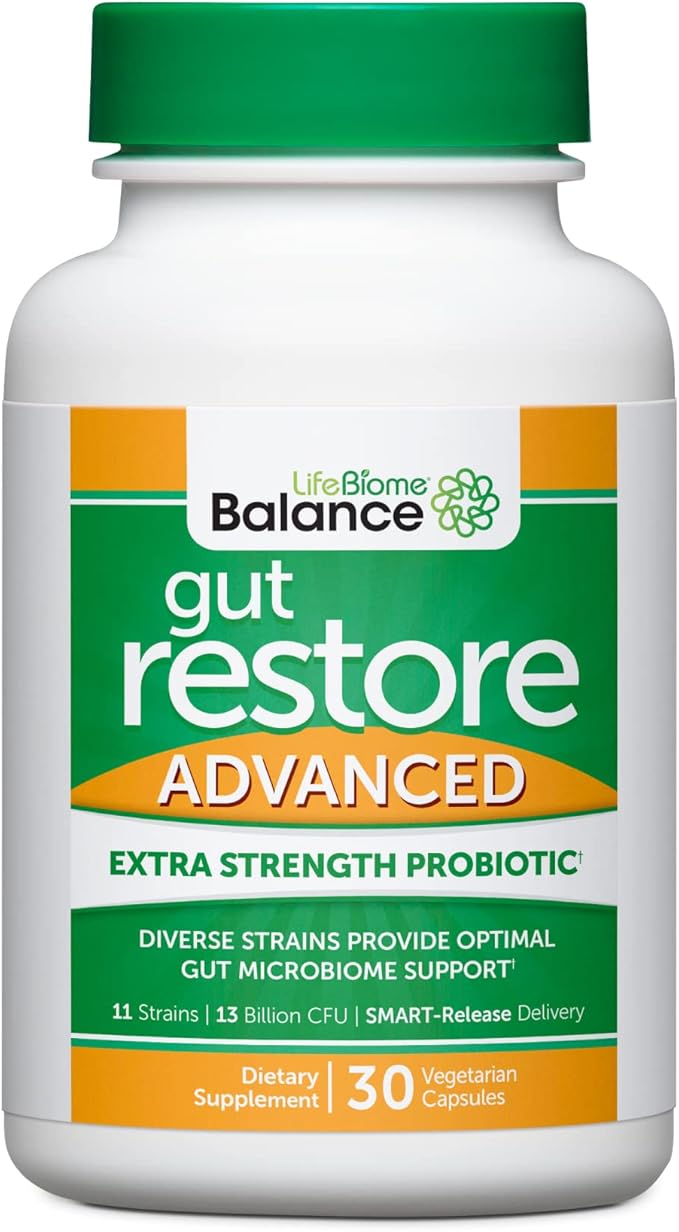 Dr. Drew Sinatra’s LifeBiome Gut Restore Advanced, Maximum Strength Microbiome Probiotic with Fermented Botanicals, 11 Multi Strains, 30 Once-Daily Capsules, Vegetarian, Soy-, Dairy-, and Gluten Free