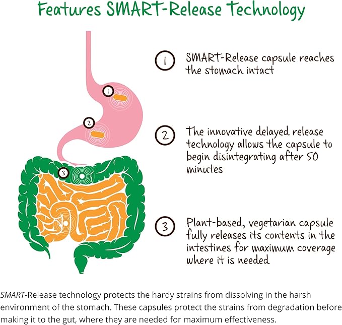 - PROBIOTICS ARRIVE ALIVE TO YOUR GUT USING SMART-RELEASE TECHNOLOGY AND ARE GUARANTEED AT EXPIRATION AS LISTED ON THE BOTTLE. The number of live organisms on the bottle is what’s alive in your bottle even on the last day of expiration. Live probiotics get delivered to your intestines using SMART-Release technology.
