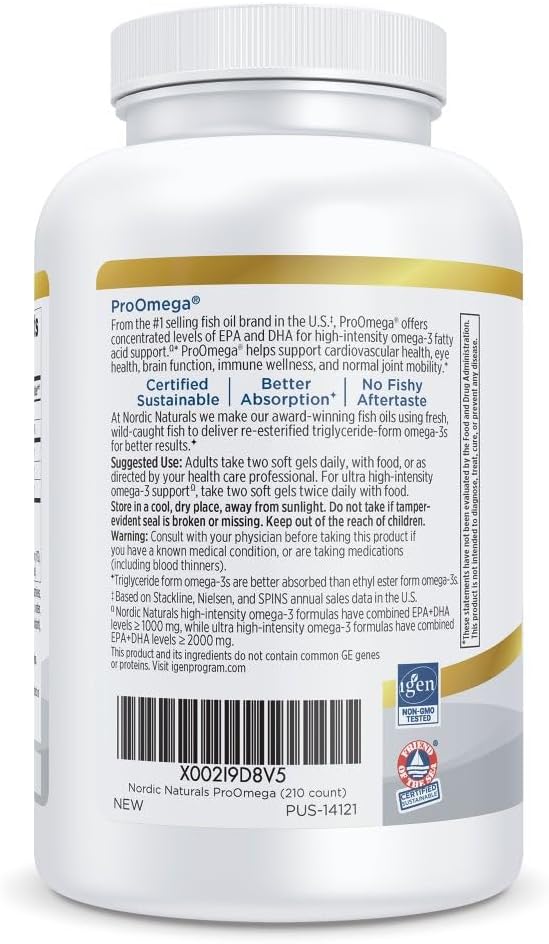 - DOCTOR-RECOMMENDED FORMULA - Nordic Naturals ProOmega features high concentration omega-3 fish oil in soft gels. This formula meets the daily recommended dose suggested by the American Heart Association to support a healthy heart.