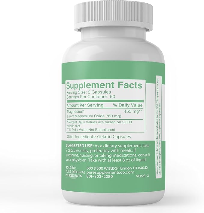 - PURE Magnesium Oxide Capsules are filled with a single ingredient, providing a pure undiluted supplement