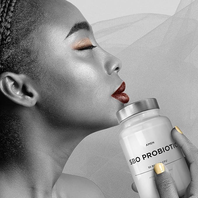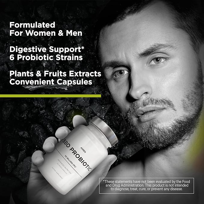 - High-Potency Probiotic Blend: Amen SBO Probiotic contains 50 billion CFUs** per serving with six different probiotic strains, including Saccharomyces boulardii, Bacillus subtilis, Bacillus coagulans, and Bacillus clausii, suitable for both women and men.