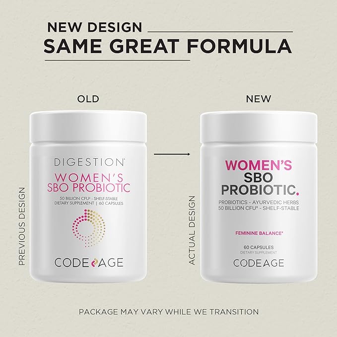 - Premium SBO Probiotic Blend: Codeage Women's SBO Probiotic supplement offers 50 billion CFUs** per serving with 18 diverse probiotic strains, specifically formulated for women.