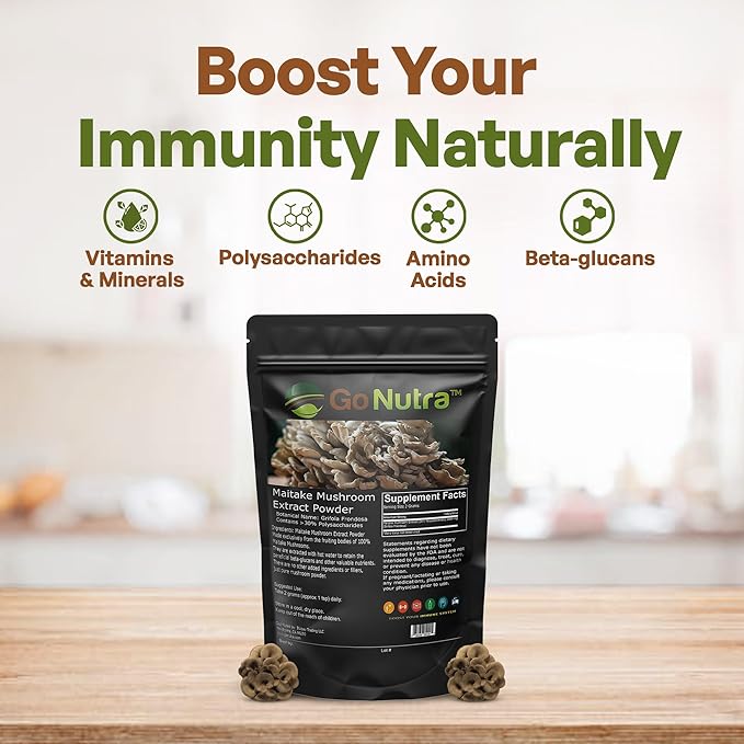 - Formidable Potency - Lean into the power of nature and harness the benefits of concentrated Maitake mushroom extract! Go Nutra’s Maitake powder boasts a 10:1 potency from triple hot water-extracted fruiting bodies, delivering optimal nutrition. Nutrient rich mushroom extract powder made from whole maitake mushrooms.