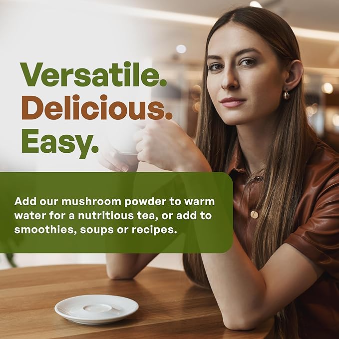 - Easy to use! Add our mushroom powder to warm water for a nutritious tea, or add to smoothies, soups or recipes. The powder is easy to use and dissolves easily in water. With a subtle, mild flavor, it blends seamlessly into your beverages or recipes.