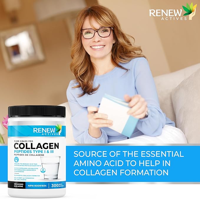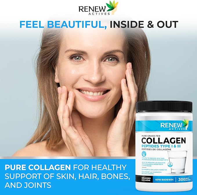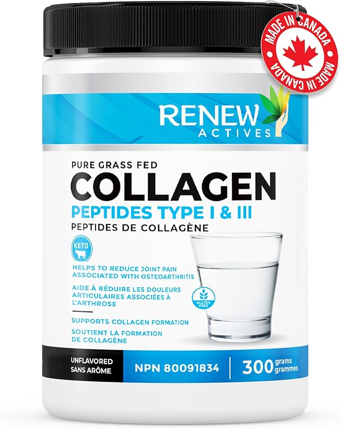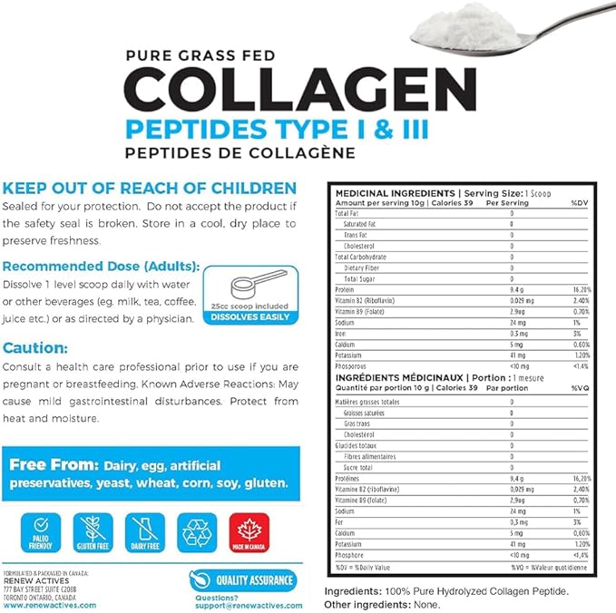 Renew Actives Hydrolyzed Collagen Peptides Powder 10G per Serving – Premium Grass-Fed Collagen for Skin, Joints & Hair – 9.4g Protein – Supports Collagen Formation & Muscle Recovery – Made in Canada