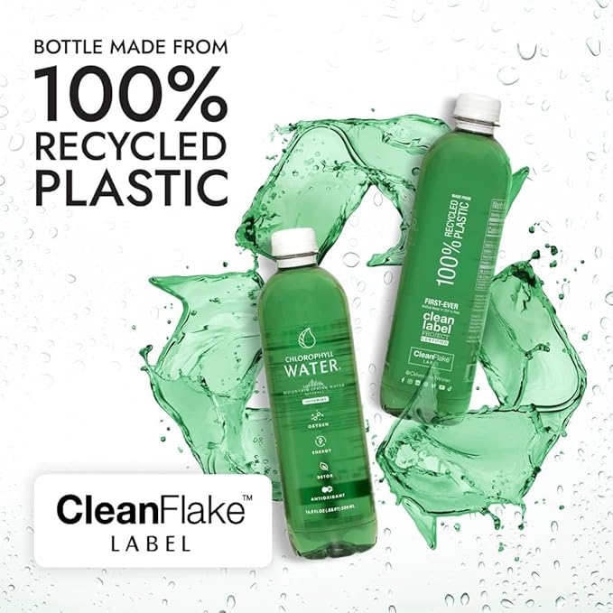 Chlorophyll Water Purified Mountain Spring Water w/Liquid Chlorophyll & Vitamins A, B12, C, D | Plant Based | Antioxidants, Detox Water, Energy Boost, Immune Support 12pk