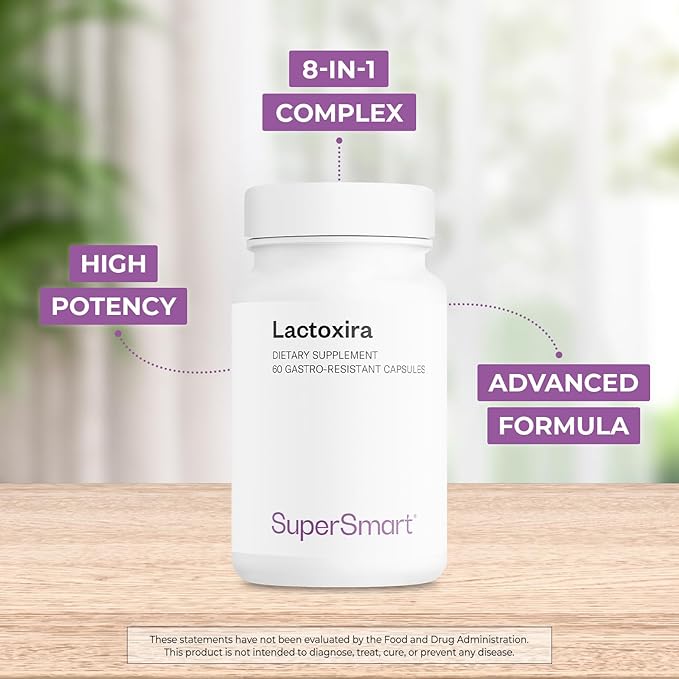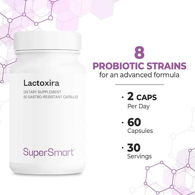Supersmart - Lactoxira (High Potency) - 8-in-1 Probiotic Complex Supplement - Advanced Formula for Women & Men - with Lactobacillus Casei, Brevis | Non-GMO & Gluten Free - 60 DR Capsules