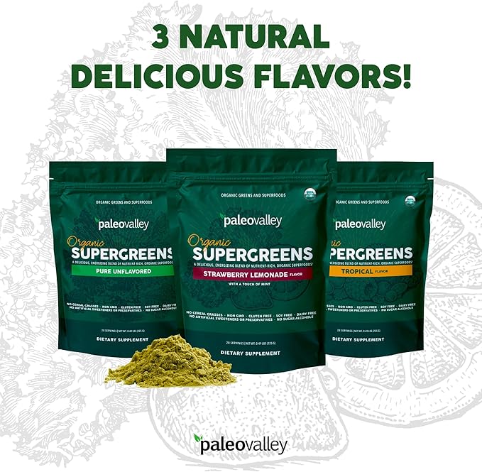 Paleovalley Organic Supergreens - Organic Greens Powder Superfood for Immune Support - Paleo Green Powder Blend - 28 Servings - 23 Organic Superfoods - Gluten Free, No Cereal Grasses, Soy or Grain