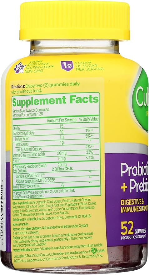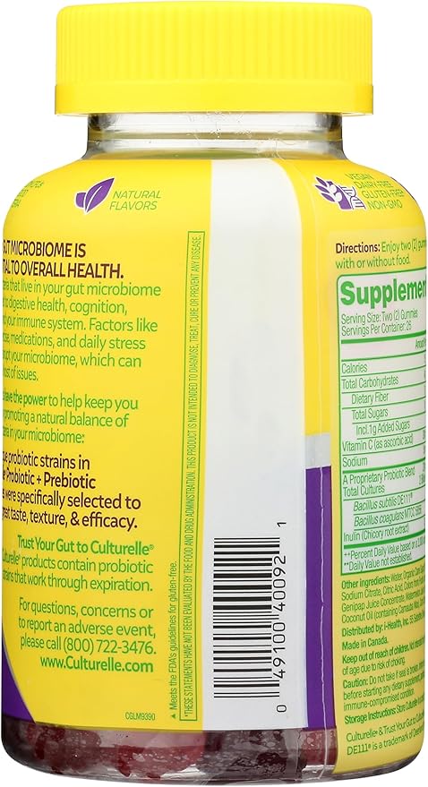 - PROBIOTIC/PREBIOTIC POWER: Your gut microbiome is essential to overall health; The bacteria that live in your gut are linked to digestive health, cognition, mood, & your immune system; Culturelle Daily Probiotic Gummies support a healthy microbiome