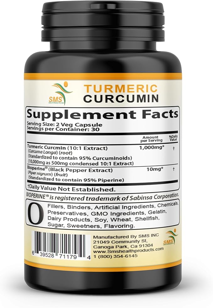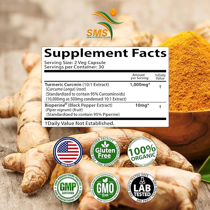 Turmeric Curcumin Supplement 1,000mg – 95% Curcuminoids with BioPerine® Black Pepper for Absorption – Vegan, Non-GMO, Made in USA – 60 Capsules