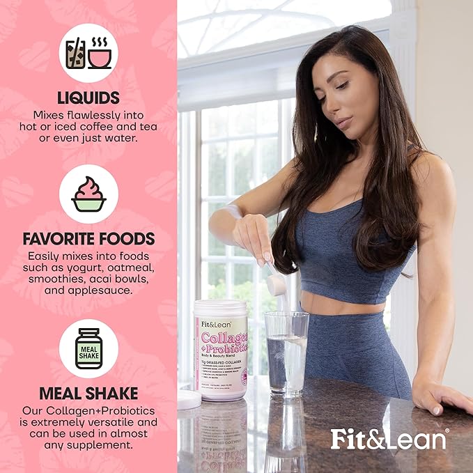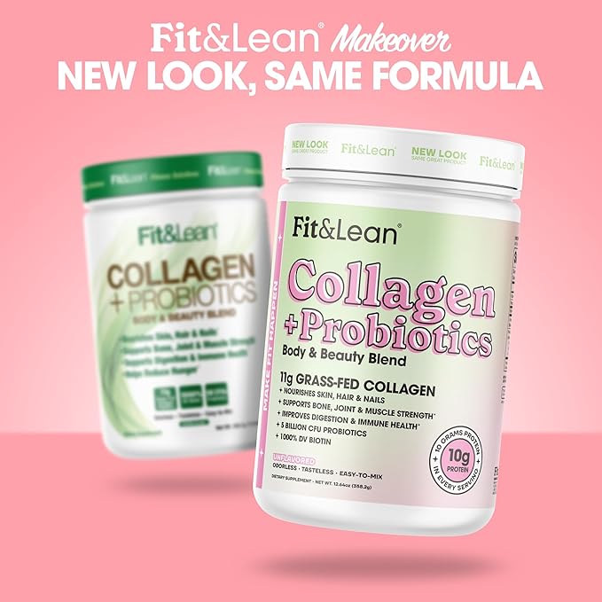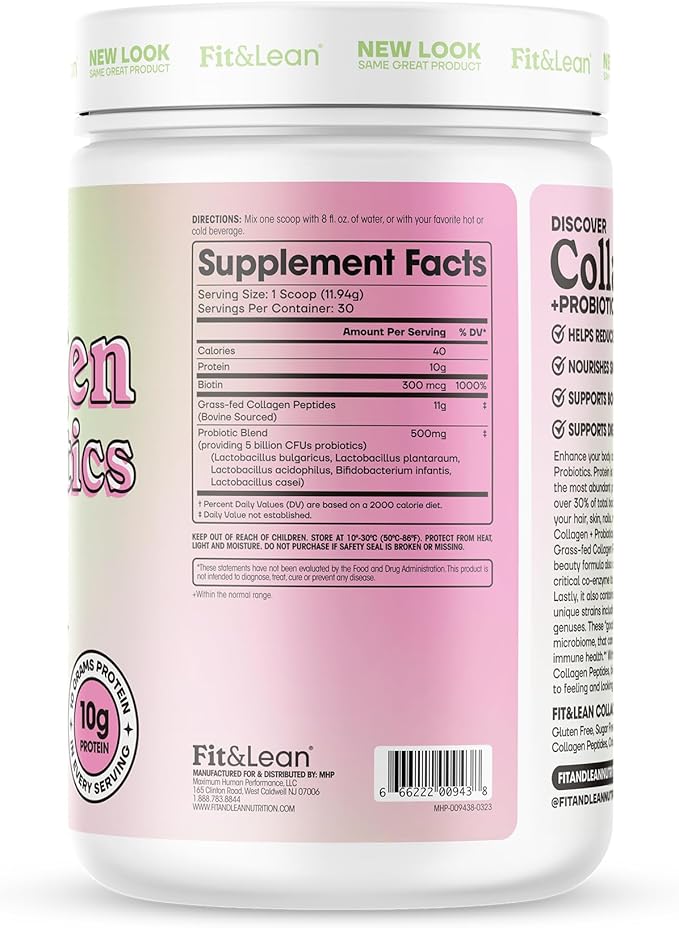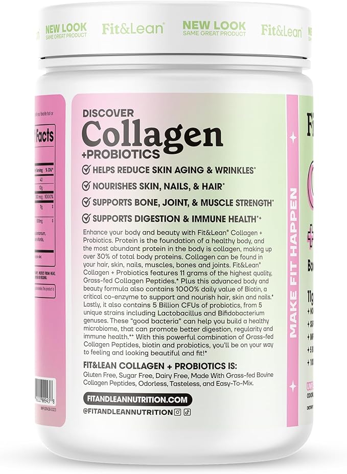 Fit & Lean Collagen + Probiotics- Grass-fed Collagen Peptide Powder, Unflavored, 12.64oz