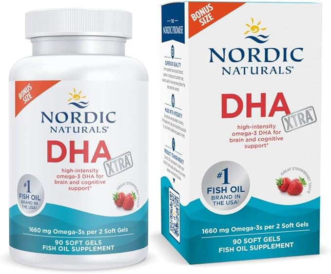 Nordic Naturals DHA Xtra, Strawberry - 90 Soft Gels - 1660 mg Omega-3 - High-Intensity DHA Formula for Brain & Nervous System Support - Non-GMO - 45 Servings