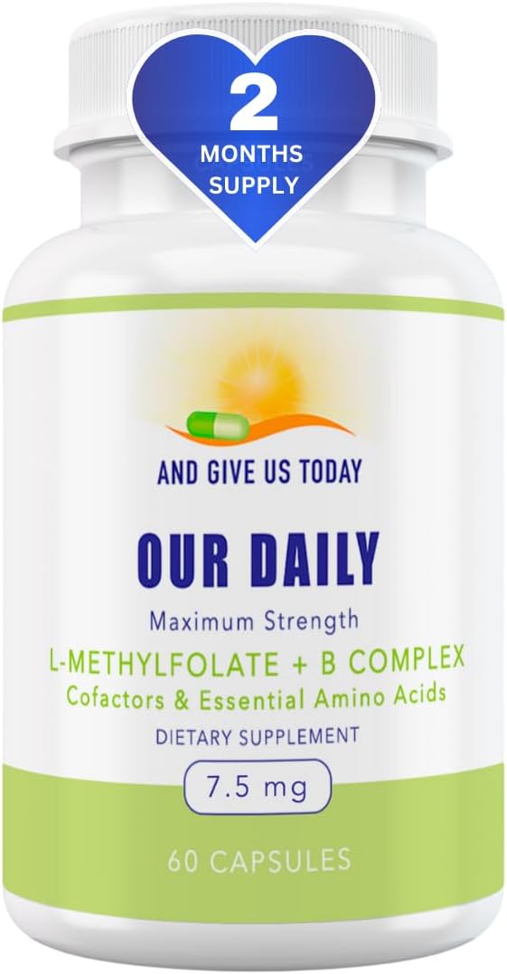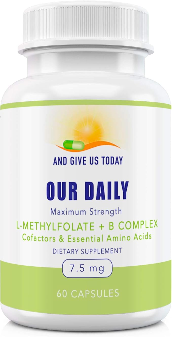 Our Daily Vites L-Methylfolate B Complex Cofactors & Essential Amino Acids (7.5mg) - Active Folate, Methylated B12 Methylcobalamin, B6 and Glycine - 60 Count