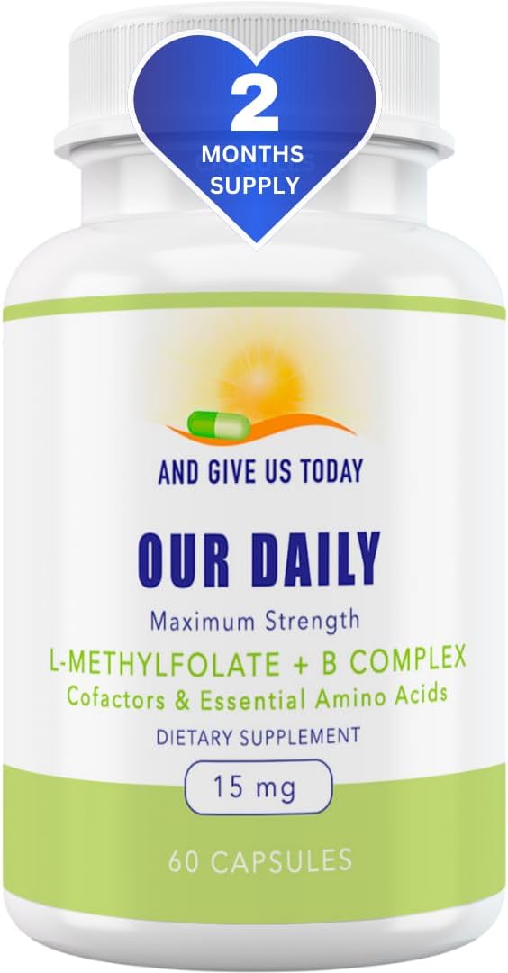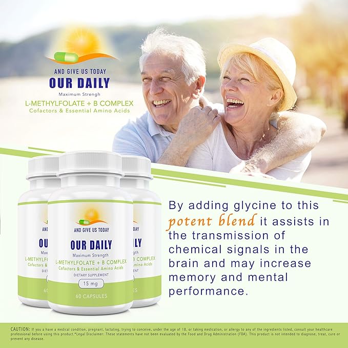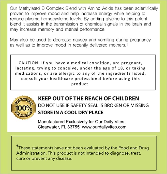 Our Daily Vites L-Methylfolate B Complex Cofactors & Essential Amino Acids (15mg) - Active Folate, Methylated B12 Methylcobalamin, B6 and Glycine - 60 Count
