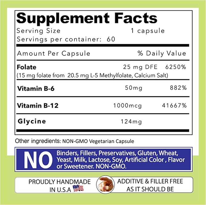 - Glycine: Our 5-mthf supplement includes glycine which assists in the transmission of chemical signals in the brain. With its combination of methylated B vitamins, amino acids and glycine, this methyl b complex is a powerful blend that can help you feel your best.