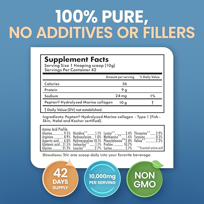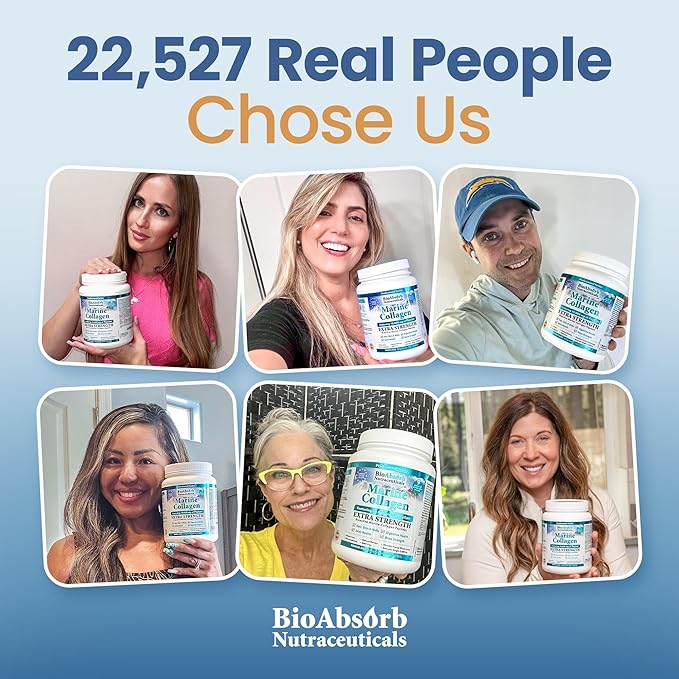 Bio Absorb Marine Collagen Powder, Extra Strength w/Peptan (Type 1 Hydrolyzed Collagen Peptides), 15 oz, 42-Day Supply