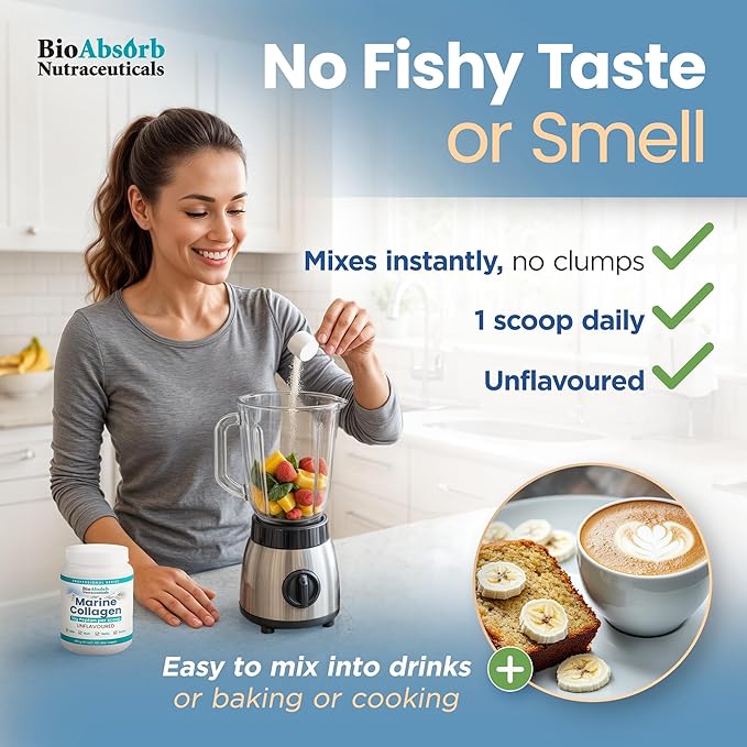 - WHY BIOABSORB MARINE COLLAGEN? Manufactured by means of a unique enzymatic hydrolysis process, our Type 1 collagen peptides are broken down into smaller peptides that are easy for the body to absorb and put to use. Ideal for pescatarians or anyone with intolerance to beef or pork protein, it is also Halal and Kosher.