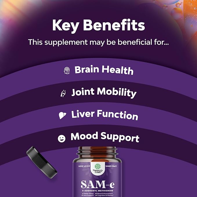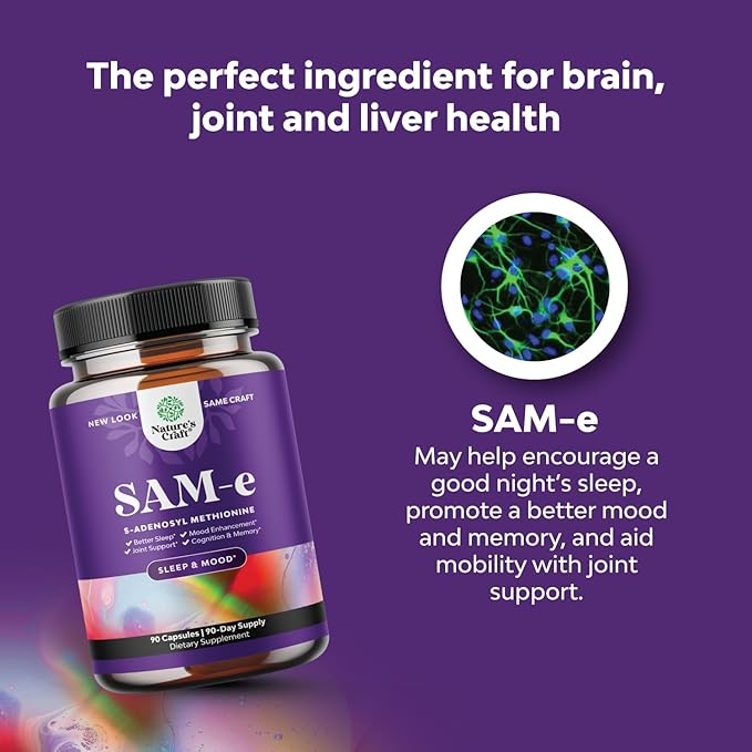 - PURE SAM-e 150mg FOR BRAIN, MOOD & JOINT SUPPORT – Experience the power of SAMe supplement 150 mg per serving, a natural nootropic designed to support brain health, mood balance & joint comfort. This versatile supplement promotes liver health and promotes cognitive function for overall well-being.