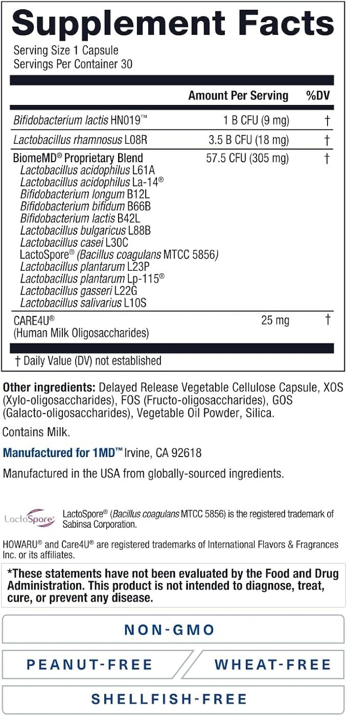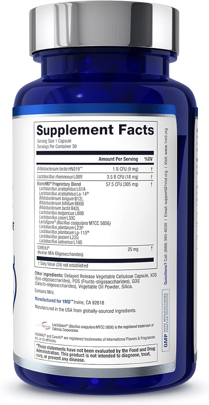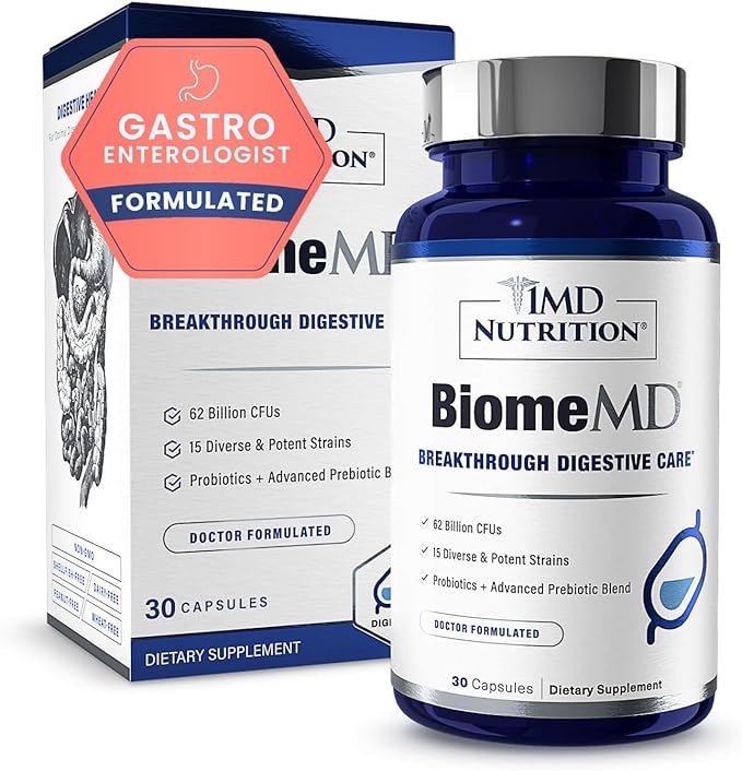 1MD Nutrition BiomeMD Probiotics | 62 Billion CFUs, 15 Comprehensive Strains - Pro & Prebiotics | Doctor-Formulated for Digestive Health & Immune Support | 30 Capsules