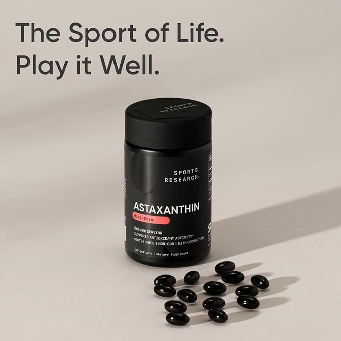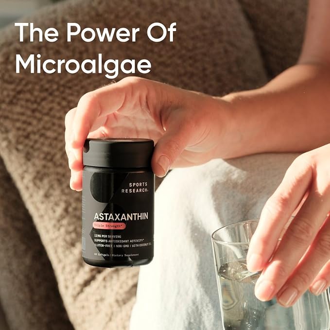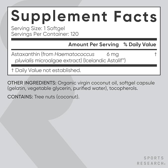 Sports Research Triple Strength Astaxanthin Supplement (6mg) with Organic Coconut Oil for Antioxidant Activity, Skin & Eye Health Support - Non-GMO Verified & Gluten Free - 120 Softgels
