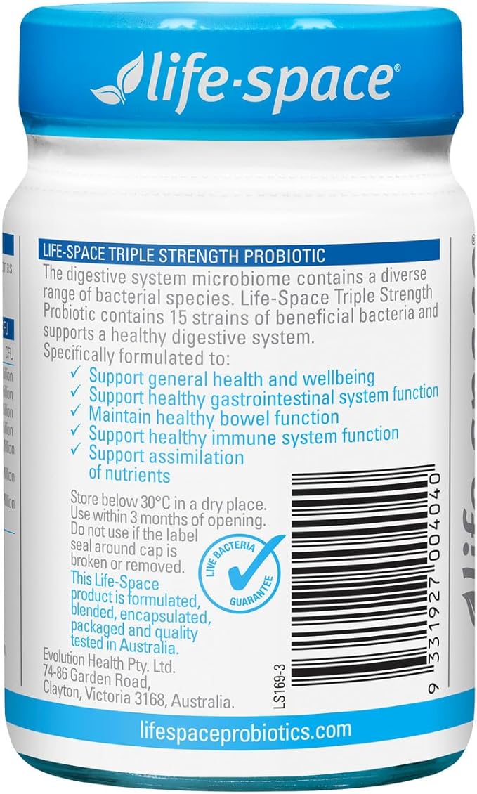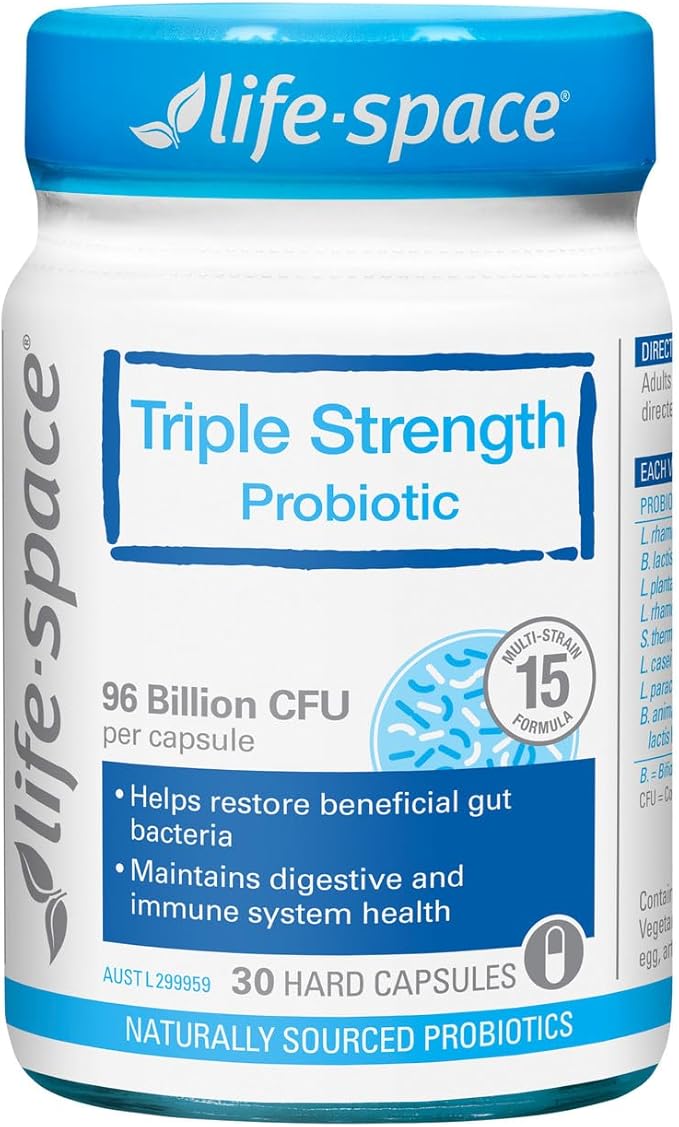 Life-Space Triple Strength Broad Spectrum Probiotic, 96 Billion CFU & 15 Diverse Strains, Advanced Formulated for Digestive Health & Immune Health, Probiotics for Women & Men - 30 Veg Capsules