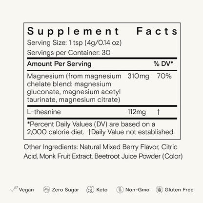 Moon Juice - Magnesi-Om, Berry - Jar (30 Servings) - Support Brain Health & Rest - Magnesium Powder - L-Theanine - Regularity - Glass Bottle - 100% Traceable - Vegan & Non GMO - 4.2oz