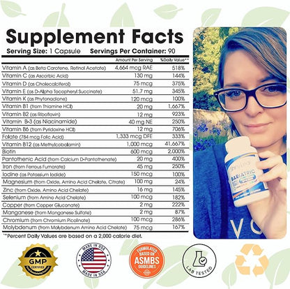- Comprehensive Nutrient Support: This bariatric multivitamin packs a full spectrum of 22 essential nutrients following ASMBS guidelines; including bioactive vitamin D3, methylated B12 & folate, a powerful B-complex, biotin, zinc, Vitamins A, E, K and More. Ideal as gastric bypass vitamins or gastric sleeve vitamins, it supports your complete nutritional needs post-surgery, ensuring you stay on track towards sustained weight-loss success with no nutrient gaps or side-effects.