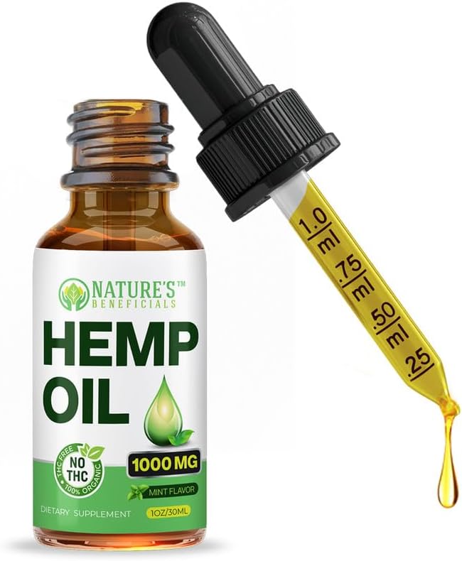 NATURE'S BENEFICIALS Organic Hemp Oil Extract Drops, 1000mg - Omega Fatty Acids 3 6 9, Non-GMO Ultra-Pure CO2 Extracted