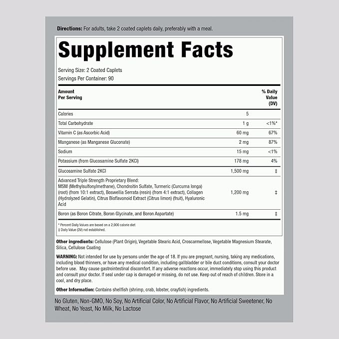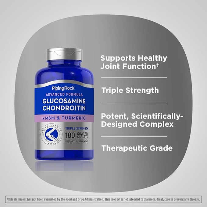 Piping Rock Glucosamine Chondroitin Turmeric MSM | 180 Caplets | Triple Strength | Advanced Supplement | Non-GMO, Gluten Free