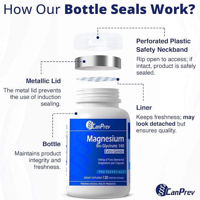 CanPrev Magnesium BisGlycinate Extra Gentle 140mg, 120 v-Caps 120-Day Supply - Pure Elemental Magnesium Supplement, Support Bone & Muscle Function, Gentle on Stomach, Perfect for Daily Magnesium Needs